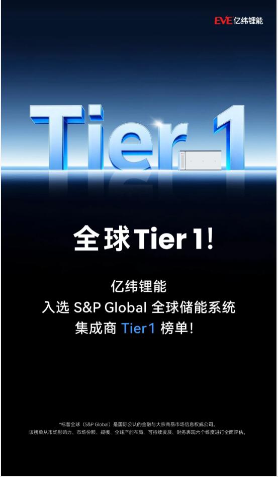全球 Tier 1!亿纬锂能入选S&P Global全球储能系统集成商Tier 1榜单!...