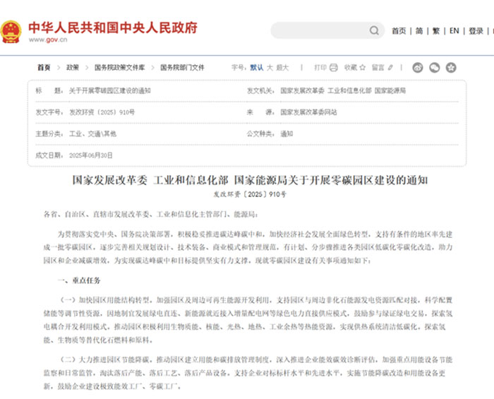 近日,国家发展改革委、工业和信息化部、国家能源局联合印发《关于开展零碳园区建设的通知》及配套细则,明确零碳园区建设标准,要求绿电直供比例不低于50%,并强调光能、地热、工业余热、生物质能等能源的综合利用,推动从单一企业减排向系统性、区域化低碳转型。
