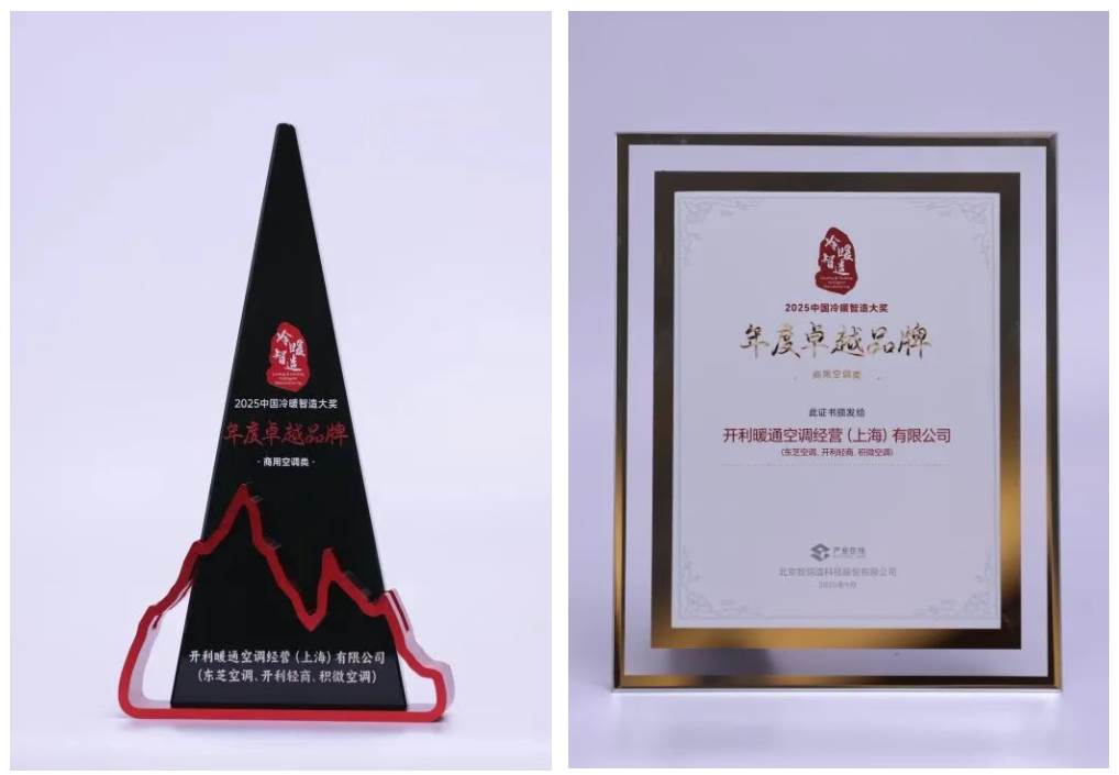 作为本次大会的支持单位,开利家用及轻商(RLC)受邀参与盛会,并凭借卓越的品牌实力与创新成果再度摘取行业殊荣。在中国“冷暖智造”颁奖盛典上,开利RLC一举斩获“年度卓越品牌”大奖,旗下东芝XIAOZHI系列家用中央空调荣获“年度创新产品”大奖。
