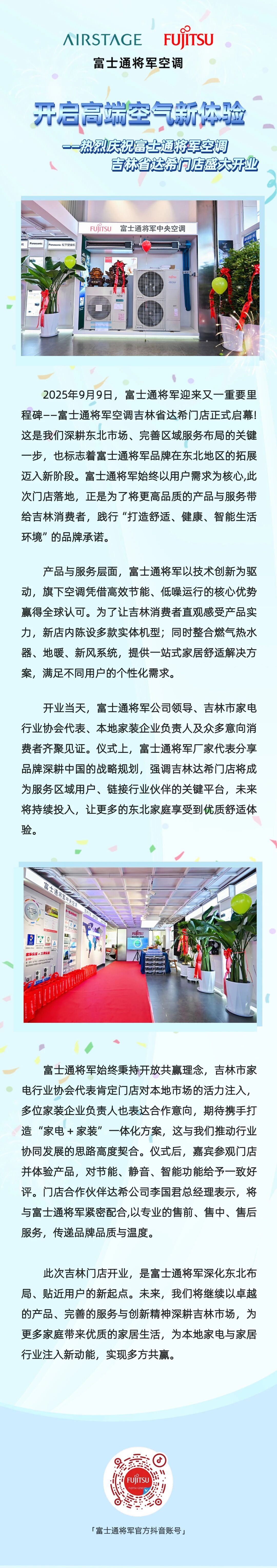 开启高端空气新体验——富士通将军空调吉林省达希门店盛大开业!!!