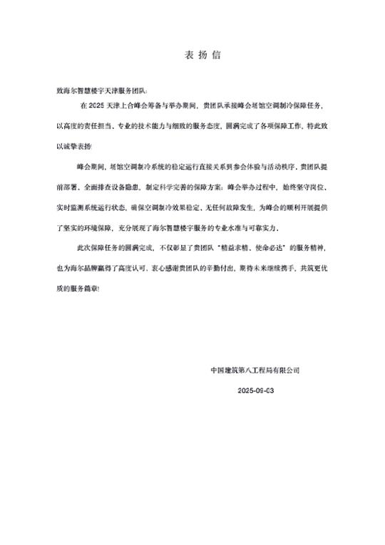 这个制冷季,海尔智慧楼宇售后团队用脚步丈量服务温度,用技术诠释品牌承诺。虽然制冷季即将结束,但海尔人的服务热情永不降温,将继续以用户需求为中心,创造更多感动时刻。