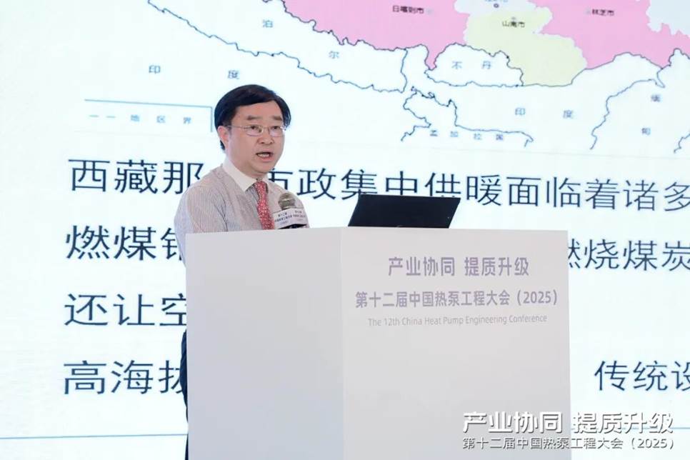 克莱门特营销副总裁卫宇先生受邀出席,并在大会论坛发表题为《藏区供暖大容量螺杆地源热泵优化及应用—以那曲市色尼区清洁能源项目1号站为例》的演讲。他在演讲中指出:大型电驱动热泵系统是藏区、川西、滇西北及新疆等寒冷和严寒地区高效供暖的重要解决方案;这些地区因供暖周期长、海拔高,对大容量、大温差螺杆热泵需求迫切,需围绕 “效率” 与 “可靠” 对机组进行综合优化,且在大型集中供暖应用中,宜推广由较低热水温度高效热泵、高效输配系统、高效散热器及控制计量系统构成的 “低温供热” 系统;卫宇先生特别强调,那曲项目打造的 “大容量螺杆热泵” 解决方案并非个例,其具备典型可复制性,可广泛应用于同类寒冷高海拔地区,为区域清洁供暖提供高效可靠解决路径。他的演讲内容引发与会嘉宾热烈讨论、获得高度认可;除大会论坛演讲外,卫宇先生还受邀参与大会圆桌论坛 -《热泵工程能效提升》。