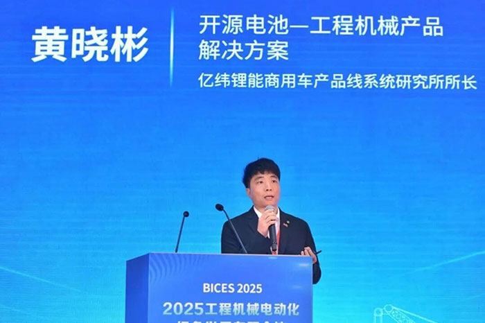 9月24日,2025工程机械电动化绿色发展论坛在北京举行,论坛以“新质赋能,绿色发展”为主题,汇聚行业机构、专家学者及企业高层,共同探讨工程机械电动化及协同发展路径。亿纬锂能商用车产品线系统研究所所长黄晓彬在论坛上发表《开源电池工程机械产品解决方案》主题演讲,围绕开源电池业务布局、技术创新及绿色工程机械领域解决方案,全面阐述亿纬锂能如何以新能源新质生产力赋能工程机械绿色发展。