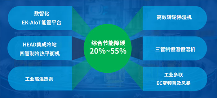高效冷源节能降碳路线是EK制药领域解决方案的核心解决方案之一。此外,EK工业空调还提供低碳热源节能降碳路线、节能干燥降碳路线以及洁净节能降碳路线,依托数智化运维管理,构建EK制药厂房节能降碳解决方案。通过综合应用EK制药领域解决方案,预计可为药企实现20%~55%的综合节能降碳效果,助力企业绿色转型!