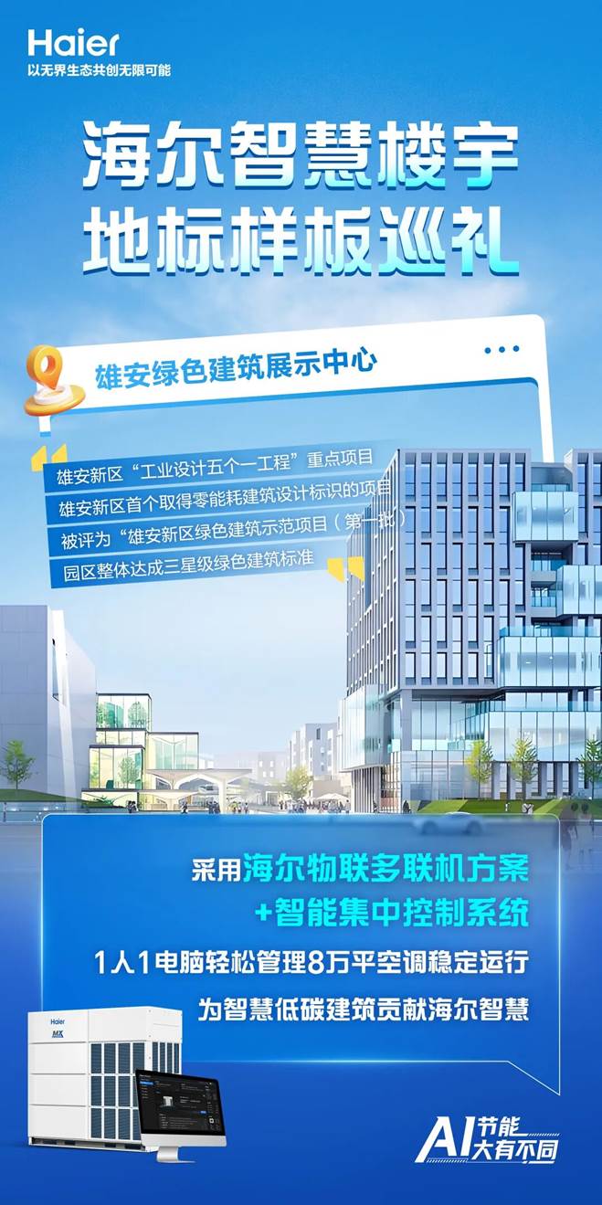 在雄安新区,这一模式再结硕果。海尔智慧楼宇参与打造的绿色建筑展示中心,作为“工业设计五个一工程”重点项目,成功获评雄安区首个零碳建筑,成为用户共创理念下的标杆示范。