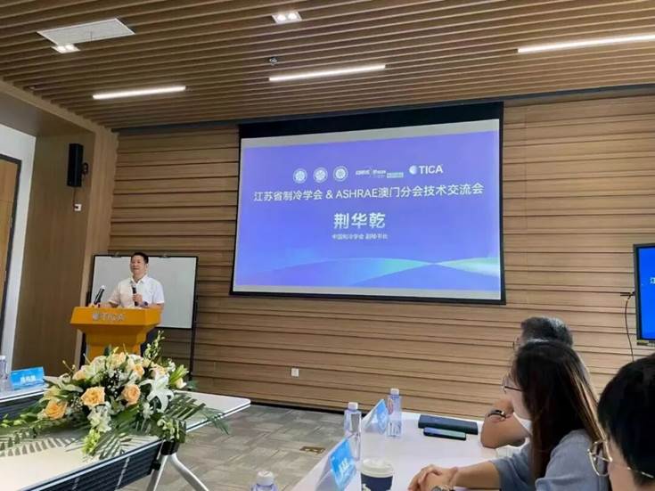 在随后的技术交流会上,天加环境COO吴小泉、中国制冷学会副秘书长荆华乾、江苏省科学技术协会党组成员、副主席冯少东、江苏省制冷学会理事长张建忠及澳门制冷学会、ASHRAE澳门分会会长黄承发先后发言,均强调了跨区域技术协同与绿色低碳发展的重要性。