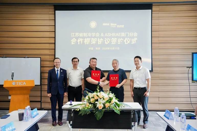 交流会现场还举行了重要合作仪式:江苏省制冷学会与ASHRAE澳门分会正式签署合作协议,为未来协同发展奠定基础。