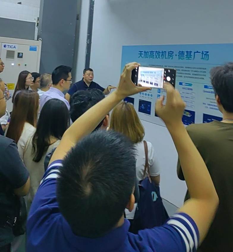 当日下午,嘉宾一行前往德基广场,实地考察天加高效机房标杆项目。途优技术经理王健现场详解项目升级历程:天加通过磁悬浮机组配置、BIM预制施工与AGI主动寻优控制等核心技术,实现机房综合能效提升75%,达成“不停业改造、零事故运行”的行业突破,其节能成效获合肥通用机电产品检测院权威认证。这一商业建筑节能改造典范,让嘉宾直观感受到天加技术的落地价值。