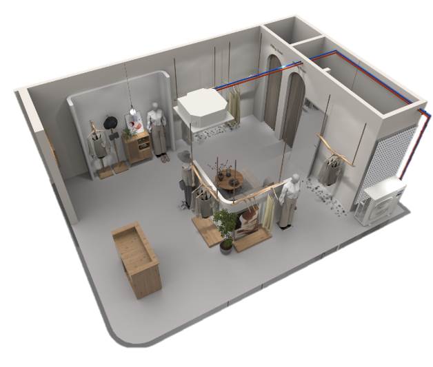 服装店内顾客停留时间长,空调直吹容易引起不适。海尔智慧楼宇提供BEST层流风嵌入机解决方案,采用10˚层流送风技术,气流柔和均匀,避免直接吹向人体。配合行业领先的8/13kW超大冷量,实现有凉感无风感,为顾客营造舒适购物环境。
