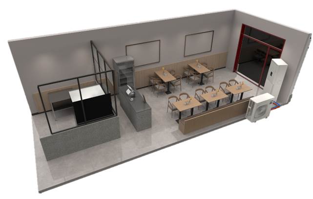 餐馆在用餐高峰期容易闷热,普通空调冷量不足、送风距离短。海尔智慧楼宇BEST130变频工商柜拥有13kW超大冷量和2100m³/h超远距离送风能力,最远送风距离达15米,即便在开放式大厅也能快速降温,为顾客提供舒适就餐环境。