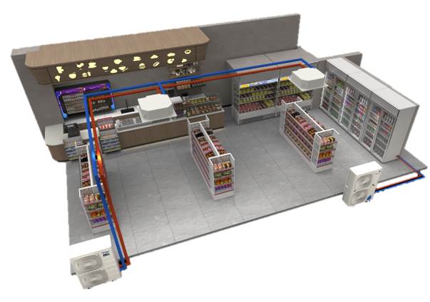 便利店虽面积不大,但密闭空间内冷柜、灯光等设备发热量大,高额电费也成为运营中一大难题。海尔智慧楼宇采用FAST系列搭配冷凝机组,在有限空间内实现高效制冷;机组1级能效、全直流变频的高效节能特性,也为商家充分节省了运营成本。