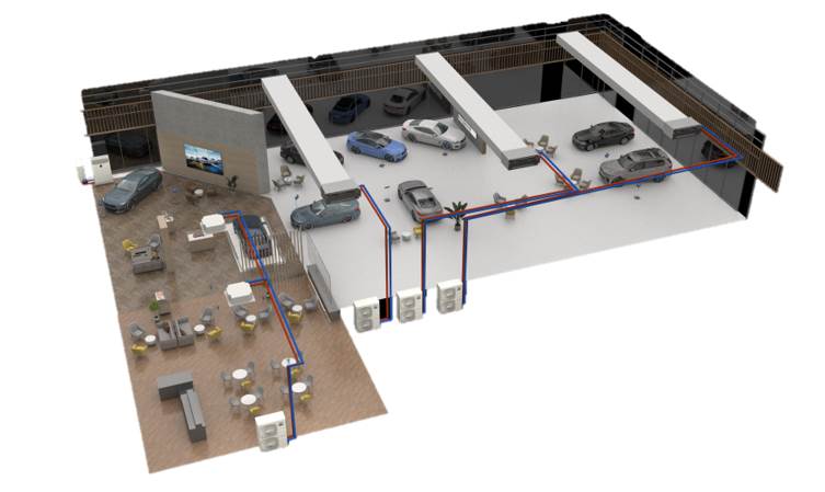 4S店作为综合性展示与服务空间,通常兼具展示区、维修区和客户休息区,各区域温度需求不同。海尔智慧楼宇提供BEST+FAST爆款组合解决方,可根据实际空间划分进行灵活搭配,实现多区域独立控温,既满足大空间整体制冷,又兼顾局部舒适,提升整体服务品质与能效。