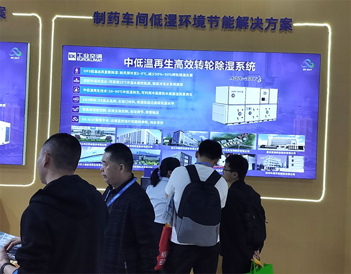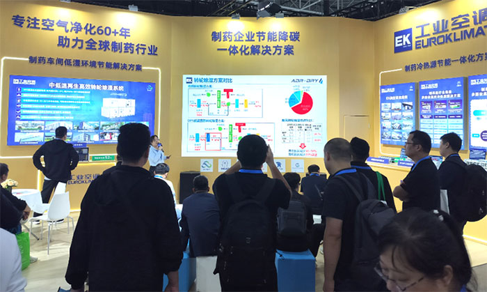 专注空气净化六十余年,EK工业空调在本次展会系统化呈现制药企业节能降碳一体化解决方案,覆盖高效冷热源、节能干燥、洁净等制药场景需求。