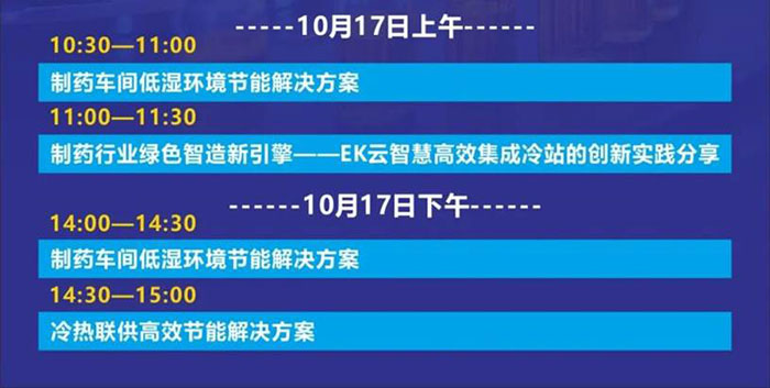 药机展精彩仍在延续,EK工业空调将在展位现场继续带来多场深度技术分享。EK技术团队已准备就绪,期待与您继续面对面沟通,共谋绿色制药新未来。