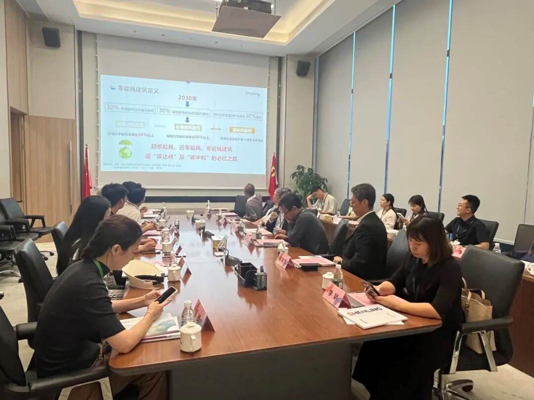 交流中,申菱环境团队向代表团系统介绍了 "数字能环" 综合能源智控理念及零碳园区整体解决方案。该方案以数字化手段实现电、热、冷、储等综合能源的柔性调度,通过 "前期咨询规划 - 目标分解设计 - 综合节能提升" 的一站式服务,助力客户高效达成减碳目标。在技术展示区,代表团详细了解了多位一体光伏系统、高效冷热源站、大温差水蓄冷、装配式集成冷站等核心技术装备,并就设备适配性、能效优化等问题展开热烈探讨。