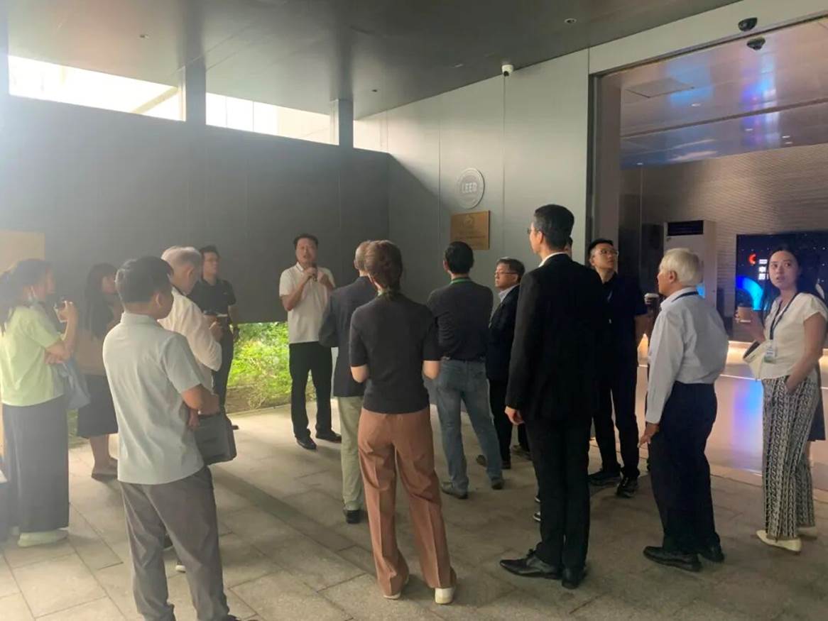 随后,代表团实地考察了“三基地”研发大楼,此前已通过“零能耗建筑”设计与运行双认证,是新基建领域智能温控产品智造基地的低碳实践成果,成为建筑领域低碳转型的标杆范例。通过光伏、光储充等技术实现可再生能源利用率超58.53%,搭配4/17℃超大温差水蓄冷系统,机房年能效比达5.52。融合 "绿色能源 + 多元化储能 + 清洁热利用 + 智慧运维" 四大核心策略,实现建筑综合节能率超100%(标准要求60%),光伏本地消纳率超 65%。通过 "光储冷柔" 联动技术实现水蓄冷年节费率超 80%。代表团同时也对申菱的技术创新能力与落地成效给予高度评价。