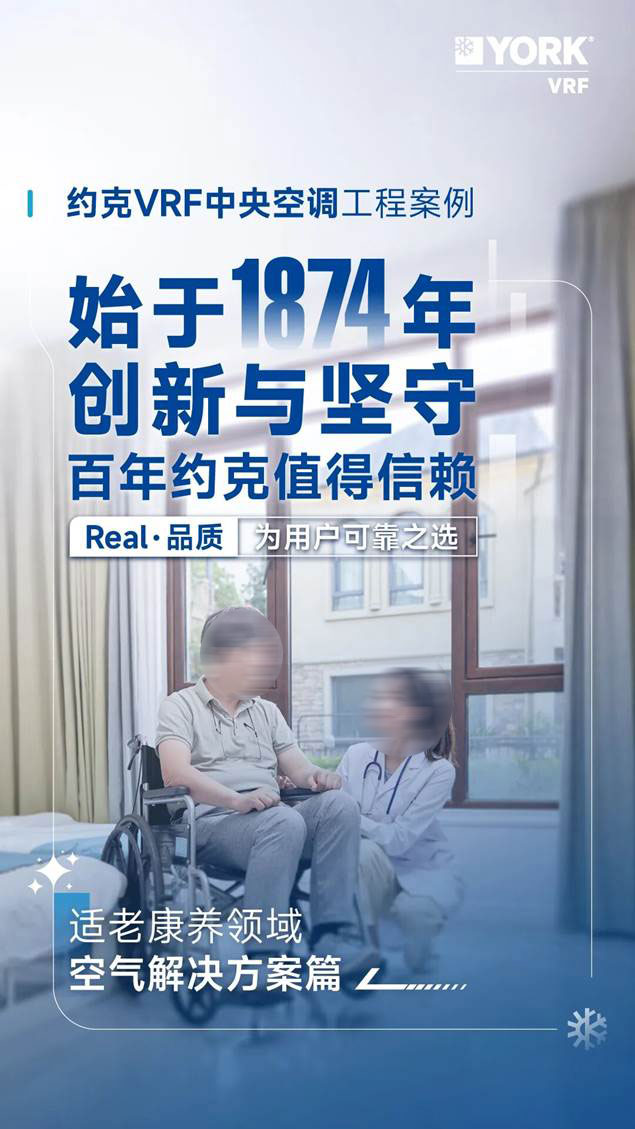 随着全社会对适老康养关注度的不断提升,约克VRF中央空调以科技创新,为养老社区、康复中心等空间,打造真正恒温养生、清新宜人、低噪静谧的健康空气解决方案,让关怀无微不至,让舒适时刻在线,护航幸福康养!