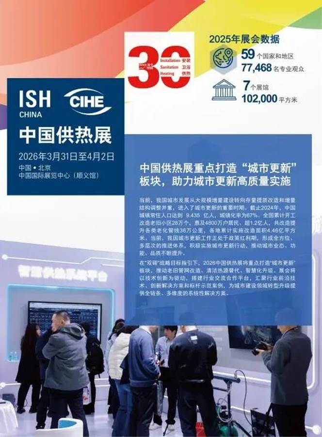 作为法兰克福展览集团ISH品牌系列展会全球网络的核心成员,ISHChina&CIHE中国国际供热通风空调、卫浴及舒适家居系统展览会(简称“中国供热展”)自1996年于北京首办,历经三十年深耕,已成长为亚洲暖通、空调、热泵与舒适家居系统全产业链的年度标杆盛会。