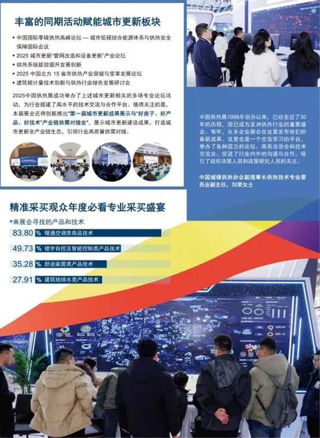 其中,“城市更新”板块作为本届展会的重要引擎,由法兰克福展览(上海)有限公司、中展智奥(北京)国际展览有限公司联合中国房地产业协会城市更新分会、深圳市城市更新协会共同策划招展。板块精准聚焦老旧管网改造、清洁热源替代、智慧化升级三大核心方向,以技术创新为驱动,搭建“前沿技术展示+创新解决方案交流+标杆案例分享”的一体化平台,为城市建设领域转型升级提供全链条、多维度的系统性支持,助力暖通企业精准对接“城市更新及市政管网改造”“以旧换新”等核心增量市场。