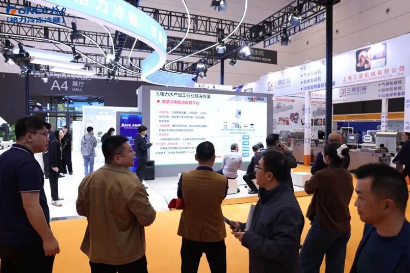 展会期间,格力在展位上进行主题为《格力水产加工智能环控系统解决方案》的经验分享,为全流程加工工艺控温需求提供专业的解决方案。