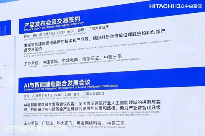 武汉智博会是中国建筑业首个聚焦智能建造全环节、全要素、全生命周期的专业盛会。由中建装饰、中建电商、中建三局与海信日立共同主办的“产品发布会及交易签约”活动作为展会重要一环,不仅是国内外智能建造领域前沿技术与创新产品的集中展示窗口,亦是产学研用高效融合的重要平台。