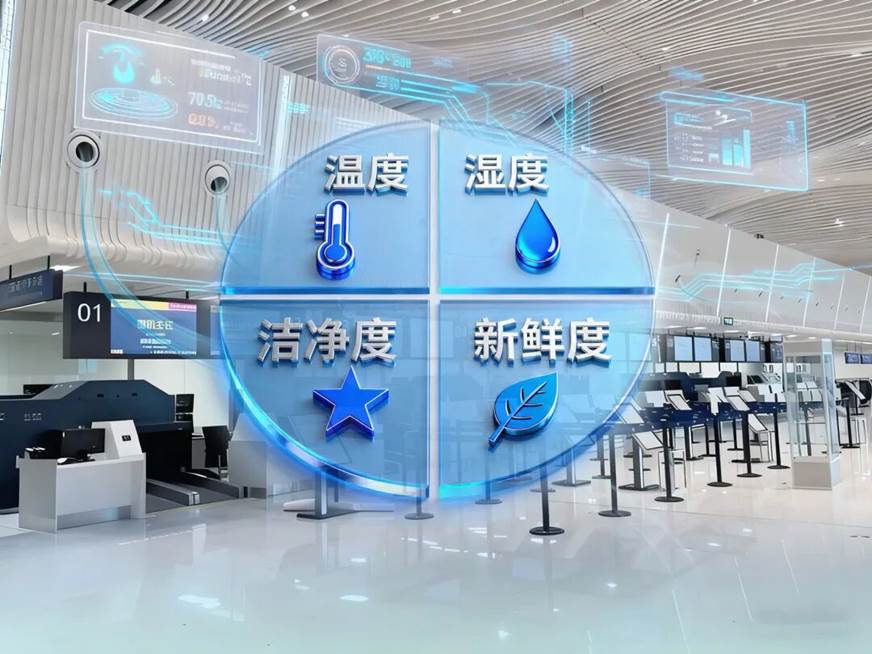 环都拓普在机场航站楼、体育场馆等大型空调系统控制领域拥有成熟经验,数字化智能控制系统采集部署在控制室,通过候机区座椅下方、分集水器出口及无太阳辐射阴冷角落等区域的温湿度传感器数据,经综合运算判定室内空气状况,匹配差异化控制策略,自动调整机组运行状态,精准满足航站楼内空气温湿度、新鲜度及洁净度要求。此外,系统具备自诊断功能,能实时监测设备运行状态,及时预警和定位异常问题,为系统高效维护与稳定运行提供可靠保障。