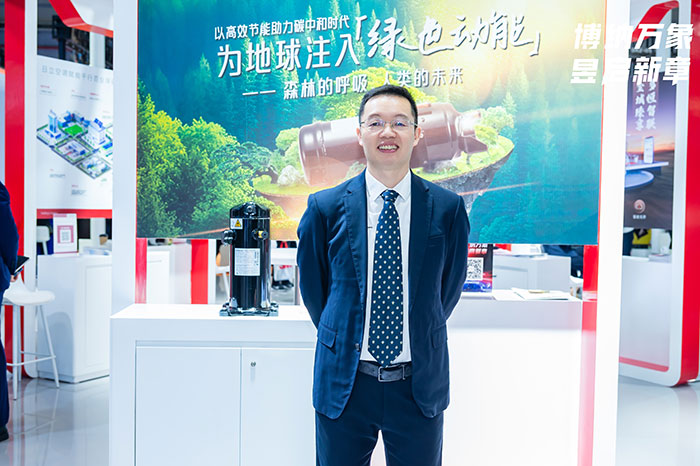 2025年11月6日,第八届中国国际进口博览会在上海举行。作为全球暖通空调领域的技术风向标之一,进博会历来是观察企业核心实力与行业趋势的重要窗口。在临港展区的日立涡旋压缩机展台,广州博世舒适科技压缩机技术有限公司商业发展与海外销售总监吴棹舟接受了艾肯网专访,分享了公司在产品创新、技术融合与绿色转型等方面的战略布局。