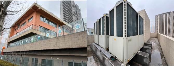 针对该园700kW制热量、390kW制冷量的核心需求,麦克维尔配置5台MAC450DR5LH型空气源热泵机组,采用分区布置方式,实现供暖制冷需求的精准匹配。