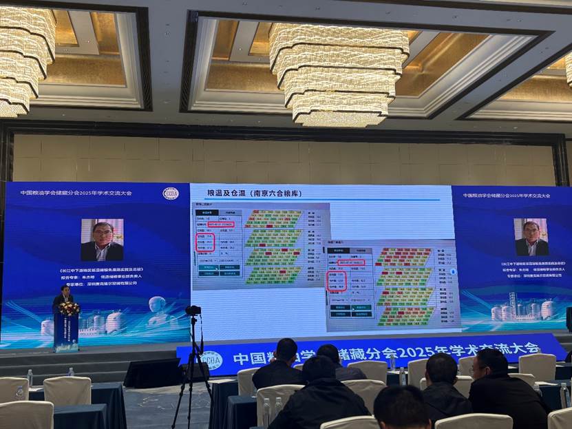 麦克维尔作为协办单位参与本次盛会,并由粮油行业经理朱杰明在会上作题为《长江中下游地区低温储粮免熏蒸实践及总结》的专题报告,熏蒸作业一直是粮食行业的刚需,也是粮食行业的痛点,国家层面一直想取消磷化氢气体熏蒸,广大粮食储藏企业也倍感熏蒸作业的安全压力,不少地方库点一年熏蒸两三次让更让大家战战兢兢。随着多学科交叉应用发展,基于低温手段的数智鲜储绿色储粮技术在长江中下游地区实现了全储藏周期的免熏蒸,朱经理向与会专家分享了麦克维尔与南京财经大学共同合作的技术应用成果。同时,麦克维尔展出是三合一粮面控温机、粮仓空调展示方案得到中储粮各省市专家的关注和咨询。