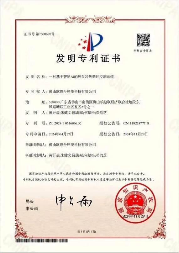 企业目前已拥有超100项技术专利,并参与多项国家及行业标准的制定。旗下多款产品不仅荣获“中国能效标识一级”认证,更斩获欧洲能效标识 A+++、KEYMARK、TUV CE 等国际认证,成功入围德国 BAFA 补贴名单、通过 GEFF 欧盟绿色融资机制认证,成为被欧洲能源标签产品中心收录的少数中国品牌之一!