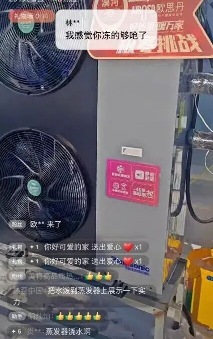 “这冒险的举动,瞬间点燃直播间氛围。但令人惊叹的是,欧能P7的蒸发器不仅没有结冰堵塞,反而通过核心融霜技术快速化解成水汽,持续输出稳定热量。镜头前,泼水成冰的瞬间蒸汽升腾,形成独特的“极寒白烟”景观,让全球观众最直观地见证了欧思丹极寒强劲制热能力!