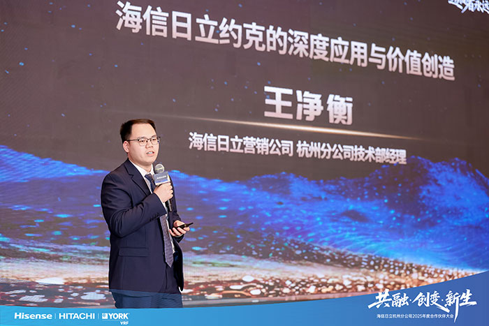 技术创新是企业发展的核心引擎,海信日立杭州分公司技术部经理王净衡随后登台,从深度应用到价值创造,再到全流程服务,详细讲解了公司最新推出的产品与技术。