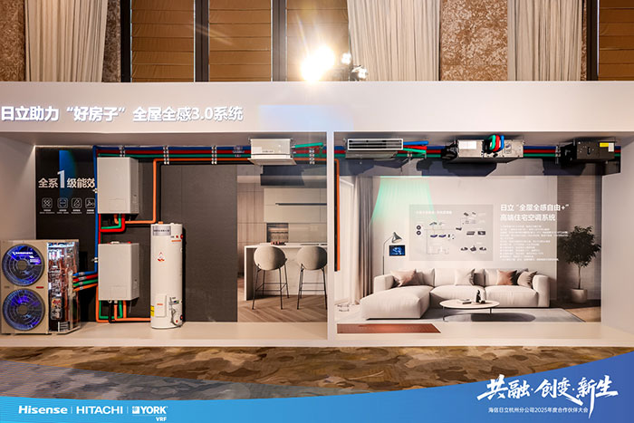 家装与地产端,日立全屋全感自由 +、智墅全感 2.0 系统,以四管制技术实现温湿精准控制;约克VRF中式多恒全空气系统适配中国家庭需求,海信 ThinkAir2.0 打造全屋健康智慧生态。