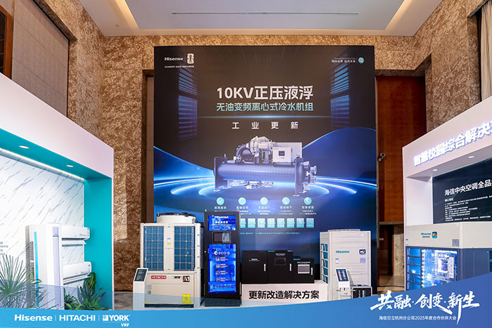 海信10KV 正压液浮无油离心机、风冷热泵模块机适配超大型园区等场景,能效与适配性双优。