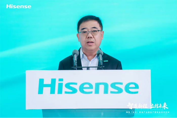 海信(长沙)家电产业园的投产,“将打破行业现有供给格局,倒逼技术迭代与产业升级,推动整个水机行业向‘更高效、更环保’的方向迈进”,殷必彤将其定位为海信“产能升级与区域布局的关键落子”,聚焦高效水机生产,并以智能制造为核心,致力于打造一座高效、数字化的现代化标杆工厂。同时,他也强调该园区是海信“技术创新与绿色发展的实践基地”,承载着助力国家“双碳”目标实现的重要使命。