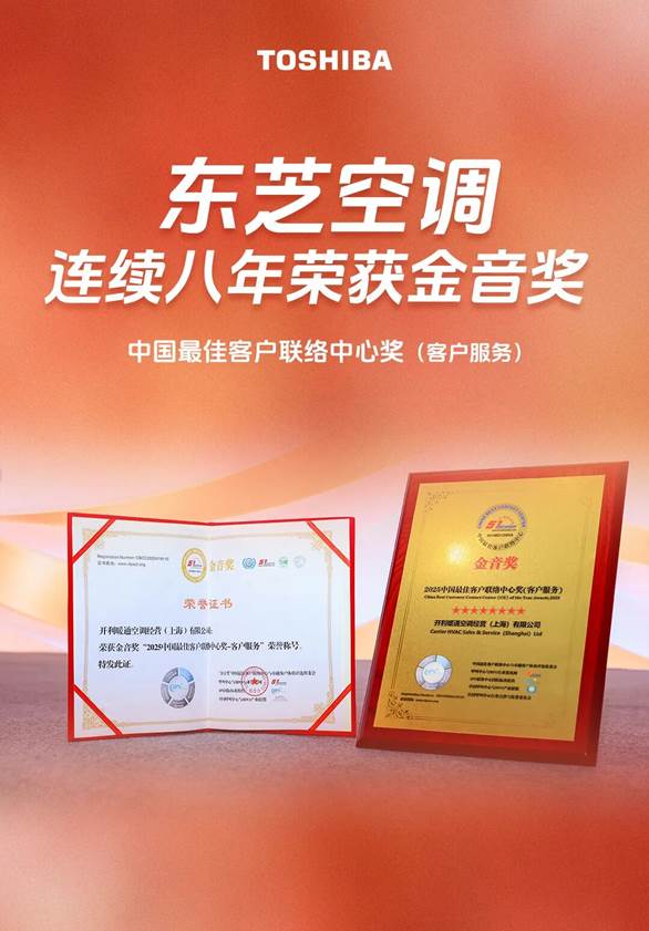 东芝空调凭借卓越的服务质量再度脱颖而出,成功摘得金音奖“中国最佳客户联络中心奖(客户服务)”。至此,东芝空调已实现自2018年参评以来连续八年蝉联该殊荣。